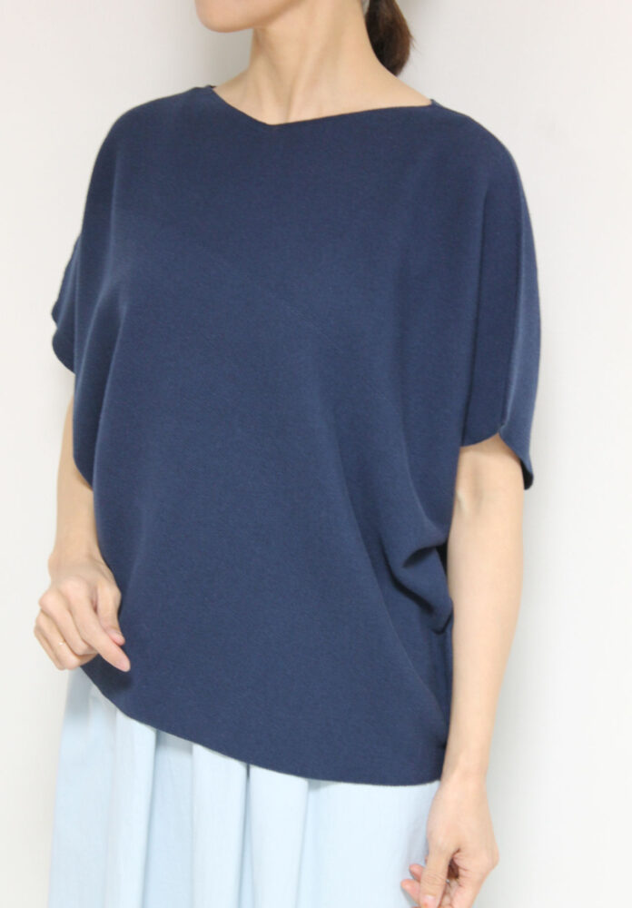アンカルネ(Un carnet)ホールガーメント斜め柄プルオーバー/ネイビー
