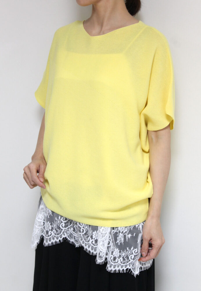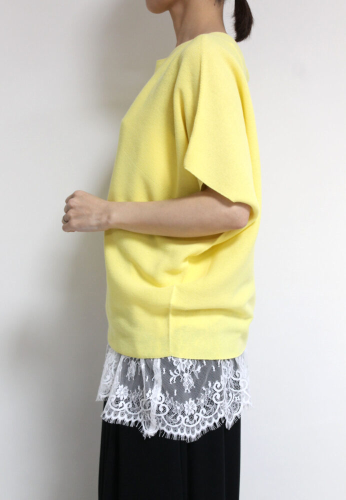 アンカルネ(Un carnet)ホールガーメント斜め柄プルオーバー/イエロー