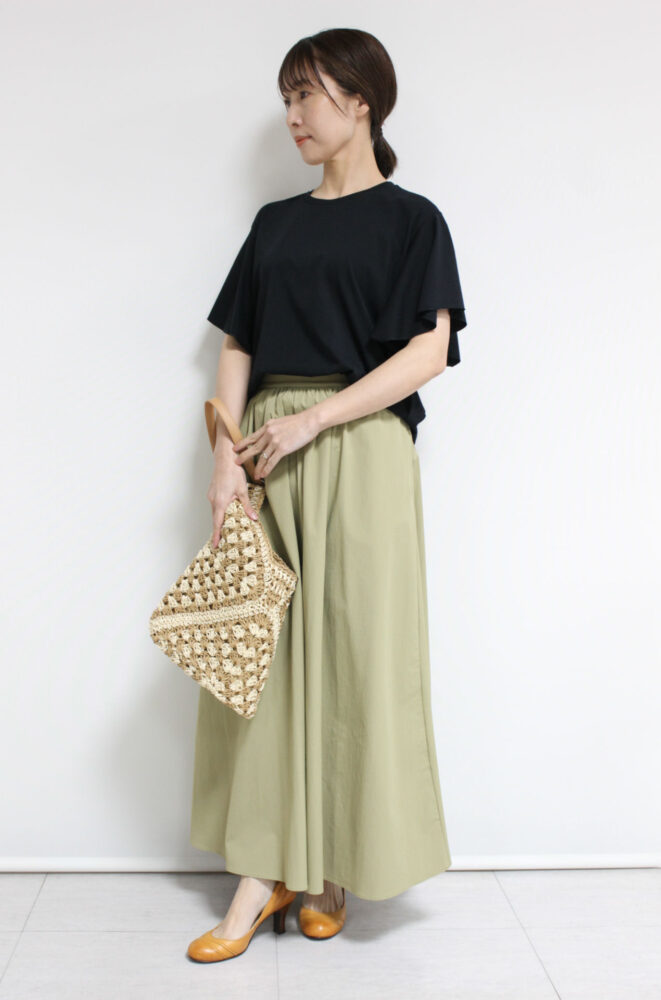 ディニテコリエ(Dignite Collier)袖フリルTシャツ&フォンタナ(FONTANA)ベイカーデニムパンツ~☆