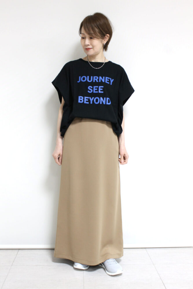着るだけでサマになる、シロデラボンテ(siro de labonte)のロゴタックスリーブTシャツ。肩まわりに自然な立体感を生むタックスリーブが、二の腕をさりげなくカバーしながら華奢見えを叶えます。ゆったりとした身幅と落ち感のあるシルエットで、体のラインを拾いにくく体型カバー力も◎。印象的なロゴがコーデのアクセントになり、この夏頼れる着映えトップスです✨