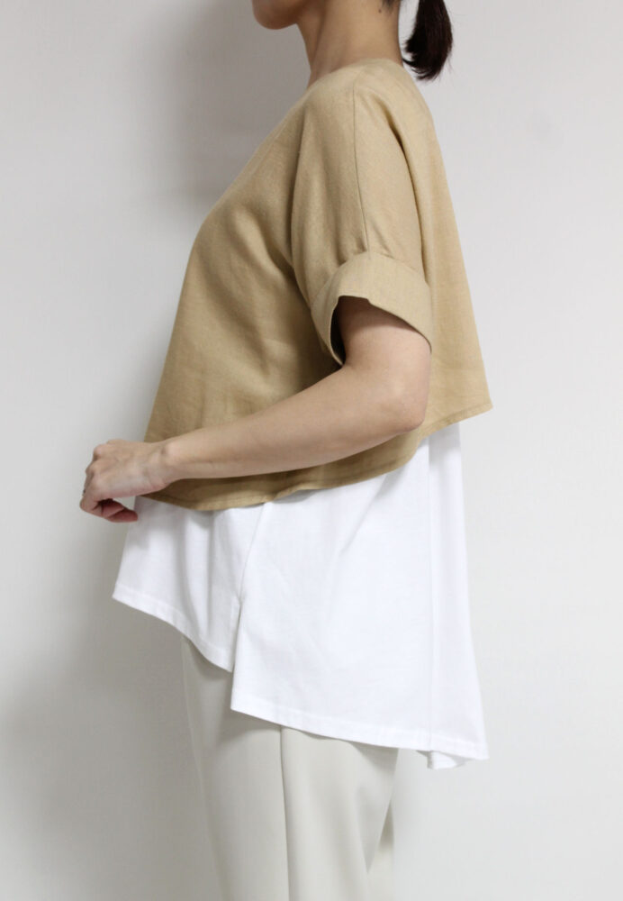パシオーネ(PASSIONE)異素材ドッキングプルオーバー/ベージュ