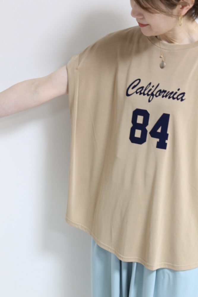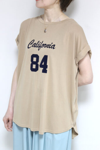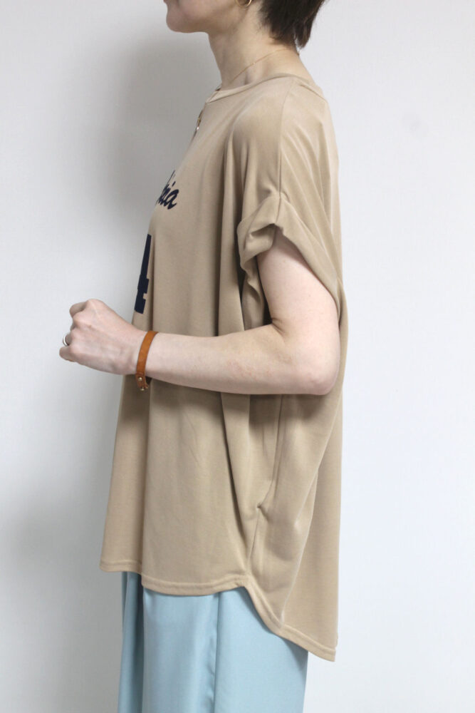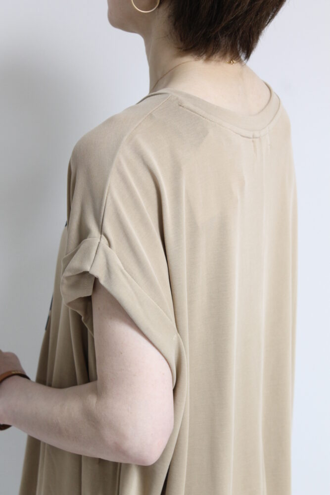 【セットアップでも人気】ロージー(ROSIEE)ソフト風合いフロッキー肩タックプリントTシャツ/ベージュ