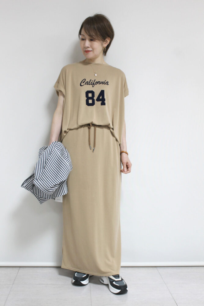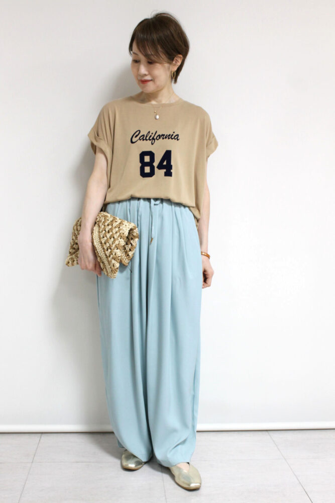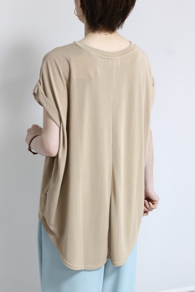 ロージー(ROSIEE)より。とろみのあるモダール素材で触れた瞬間にわかるやわらかさ。落ち感のあるシルエットが体のラインを拾わず、ラフなのに女性らしさもキープ。フレンチスリーブで肩まわりもすっきり見え、ロゴが程よいアクセントに。同素材のボトム(R810305)と合わせてセットアップ対応も可能。上下で揃えればリラックス感がある大人のワンマイルスタイルが完成します。単品でもセットでも着回しが効く頼れる一枚です◎