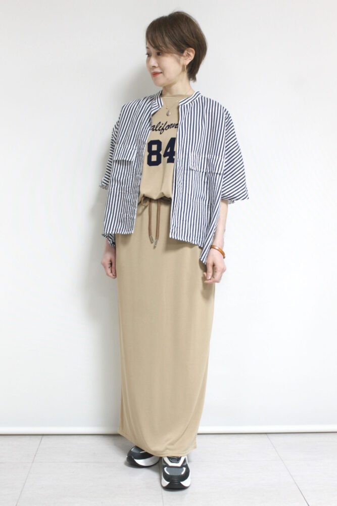 【セットアップでも人気】ロージー(ROSIEE)ソフト風合いⅠラインスカート/ベージュ