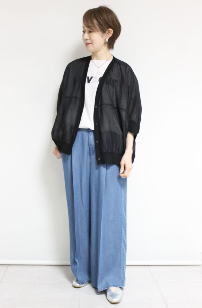 ほんのり透けるシアー素材が、軽やかで涼しげな印象を演出するフォンタナ(FONTANA)のドルマンカーディガン。ゆったりとしたシルエットで体のラインを拾わず、さっと羽織るだけで自然な抜け感が生まれます。ボリュームのあるインナーにも重ねやすく、気になる腕まわりもさりげなくカバー。季節の変わり目から夏場まで長く活躍する一枚です◎