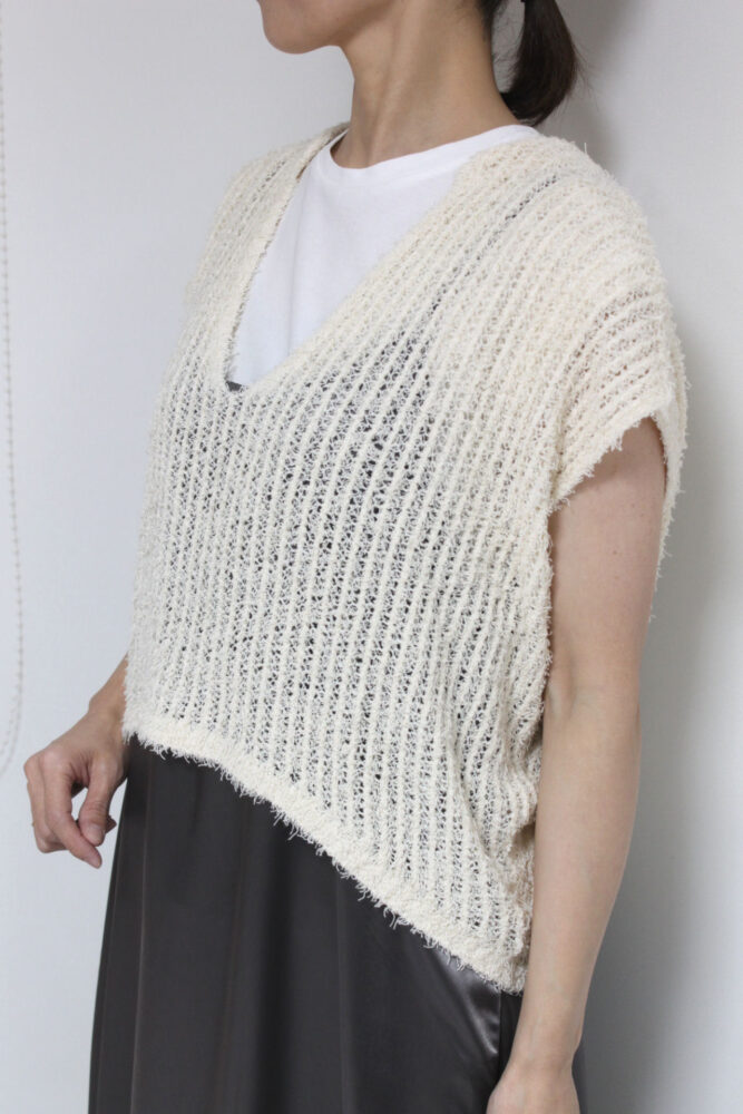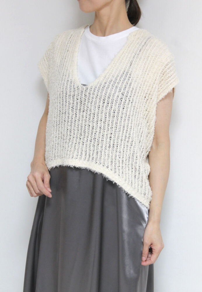 パシオーネ(PASSIONE)フリンジニットベスト/アイボリー