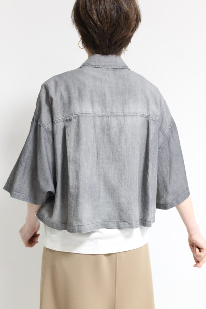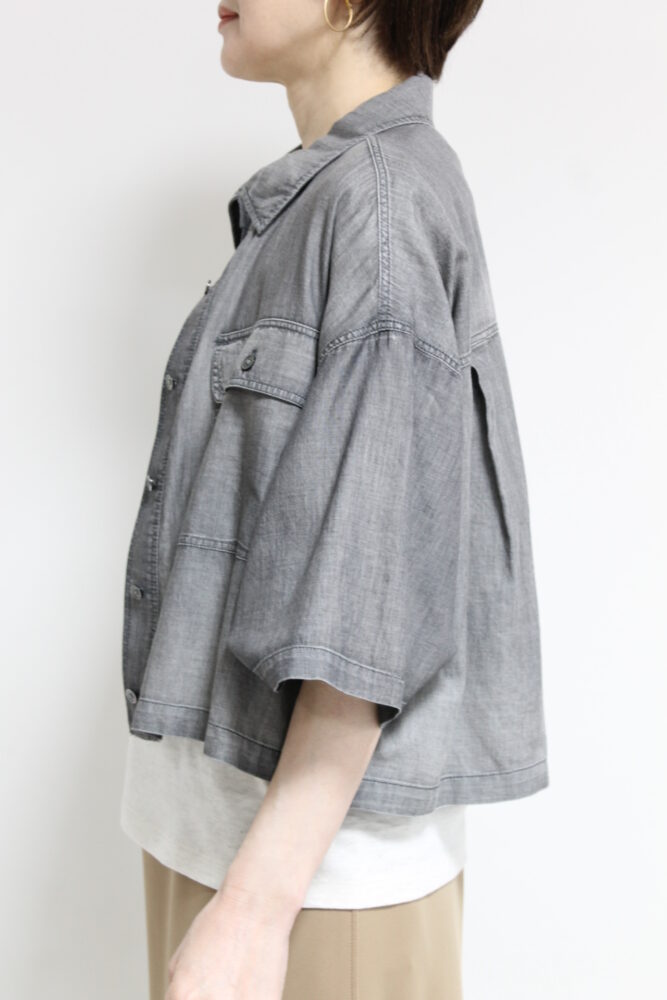 ディニテコリエ(Dignite Collier)シアーデニム半袖シャツ/ブラック
