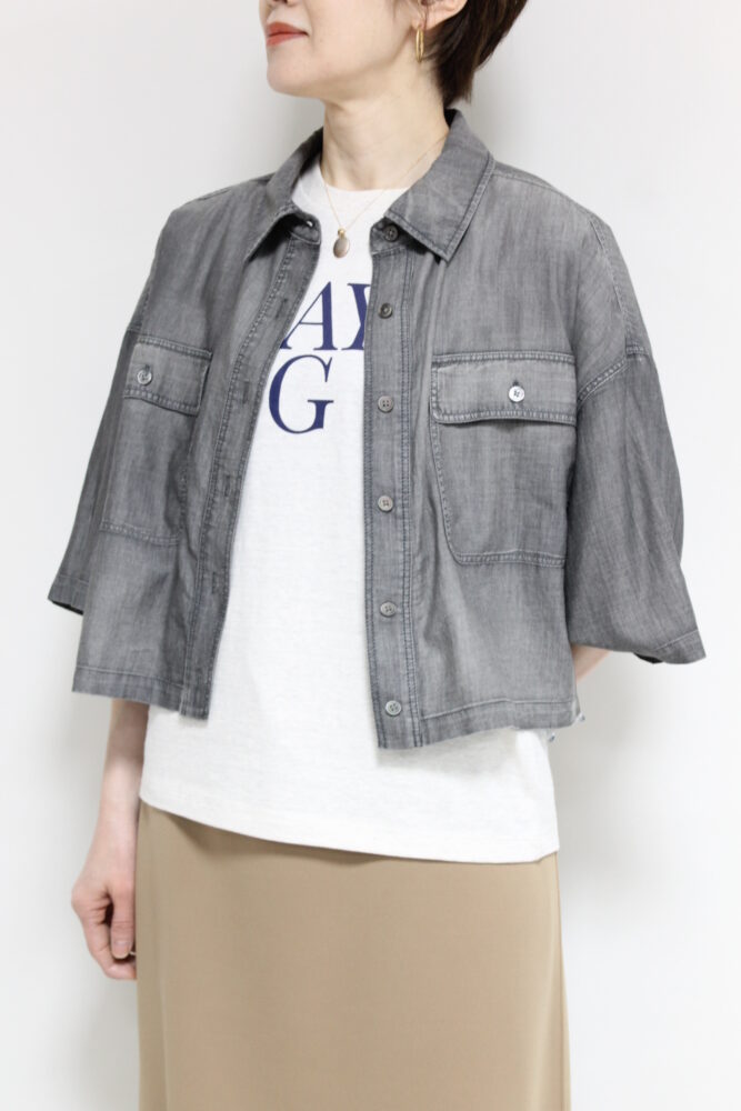 さらりと羽織るだけで、こなれた抜け感が生まれるディニテコリエ(Dignite Collier)のシアーデニム半袖シャツ。薄手で軽やかなコットン素材にほんのり透け感があり、見た目にも涼しげで快適な着心地?コンパクトな丈感でバランスが取りやすく、パンツにもスカートにも好相性。羽織りとして最適で、シンプルになりがちな夏コーデに奥行きをプラスしてくれます☀️