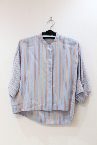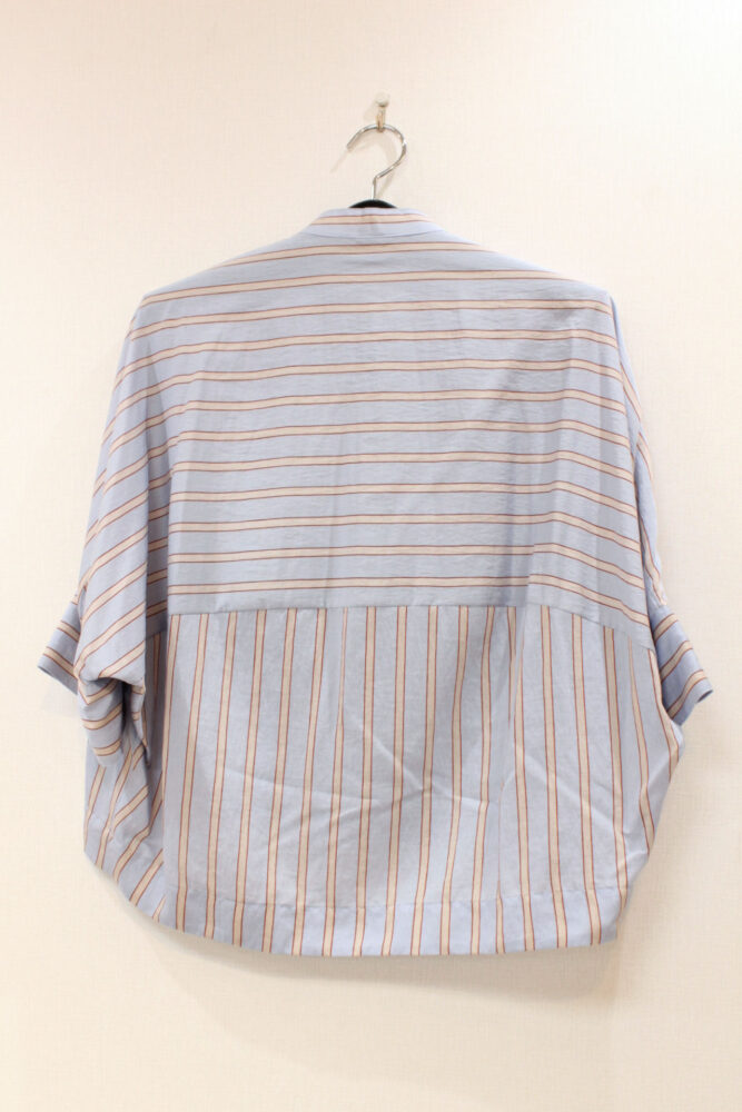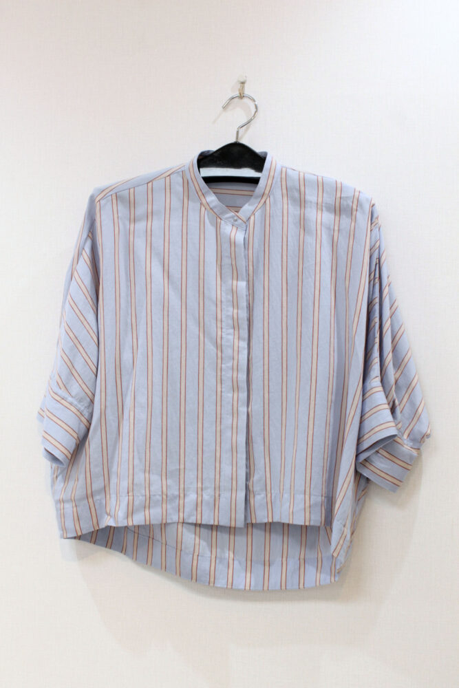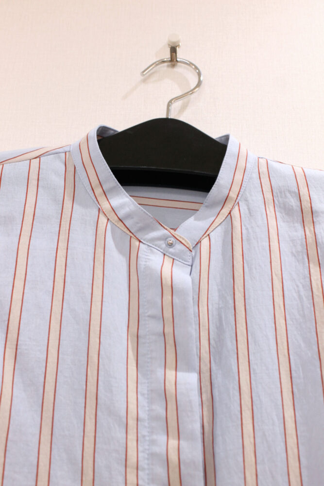 『K様御売約品』パシオーネ(PASSIONE)バンドカラーストライプシャツ/サックス×ベージュ
