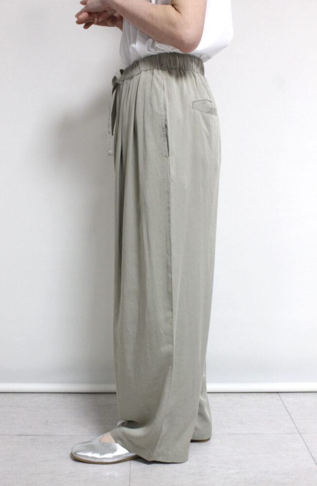 なめらかな落ち感が魅力のディニテコリエ(Dignite Collier)テンセルバイオタックパンツ。上品な光沢としなやかな風合いで、リラックス感がありながらもきれい見えを叶えます。ウエストはドロスト仕様でラクな穿き心地。タック入りのゆったりシルエットが体のラインを拾わず、自然にスタイルアップ。シンプルなトップスを合わせるだけで、こなれた大人のスタイリングが完成します◎(80268226のシャツとセットアップ可)