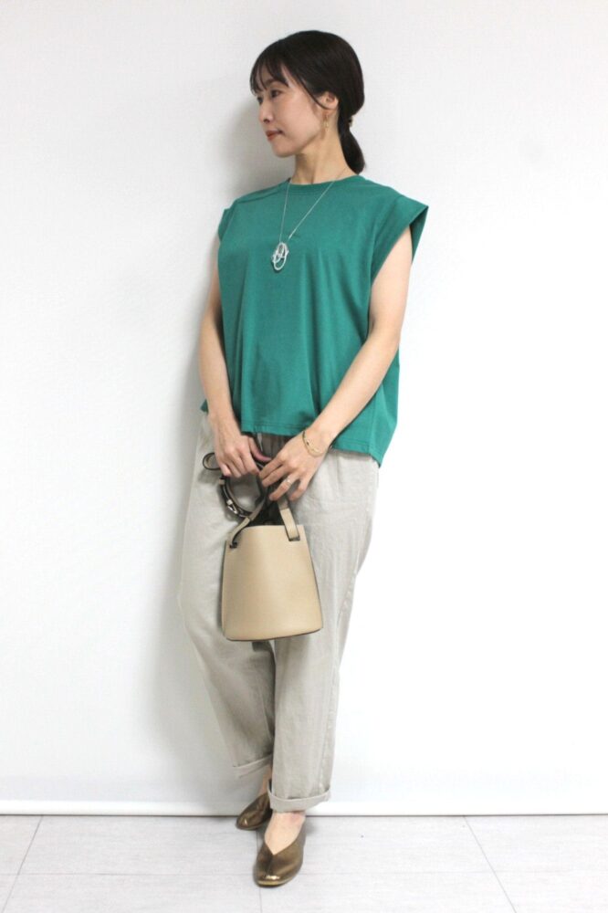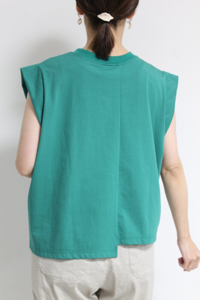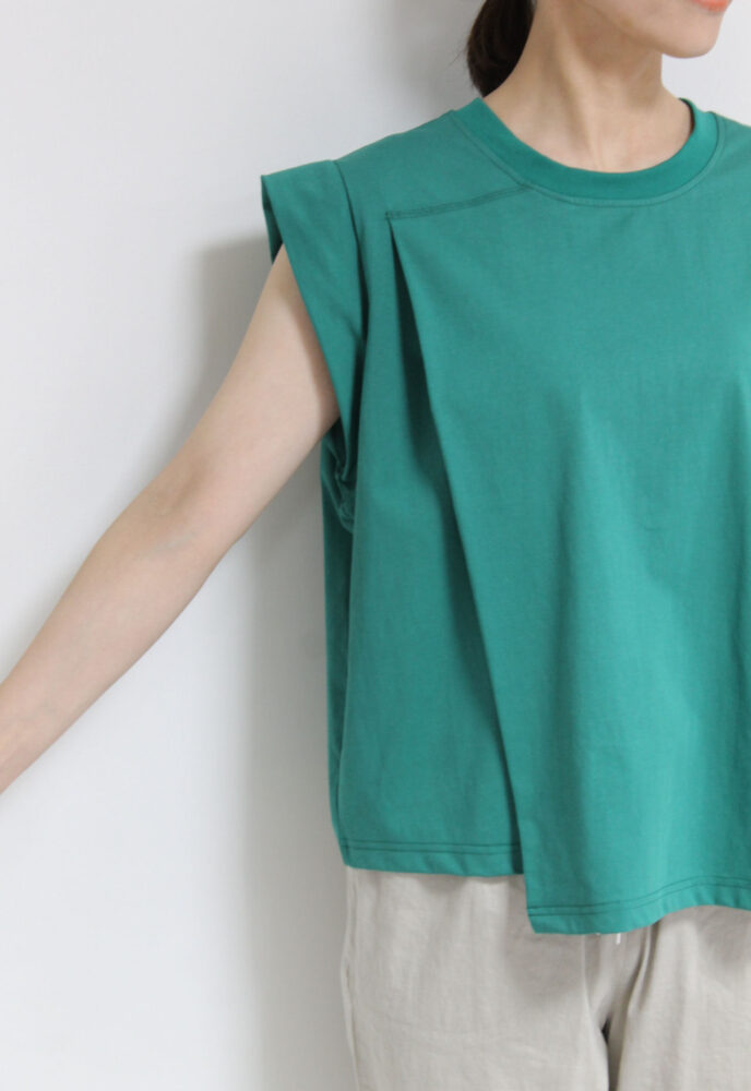 ディニテコリエ(Dignite Collier)フロントタックアシンメトリーT/グリーン