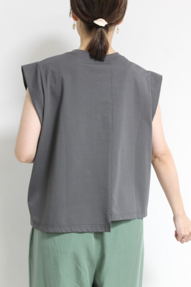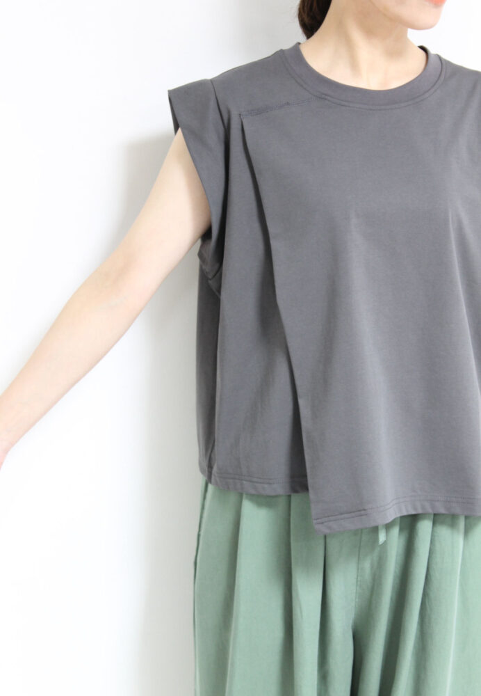 ディニテコリエ(Dignite Collier)フロントタックアシンメトリーT/チャコール