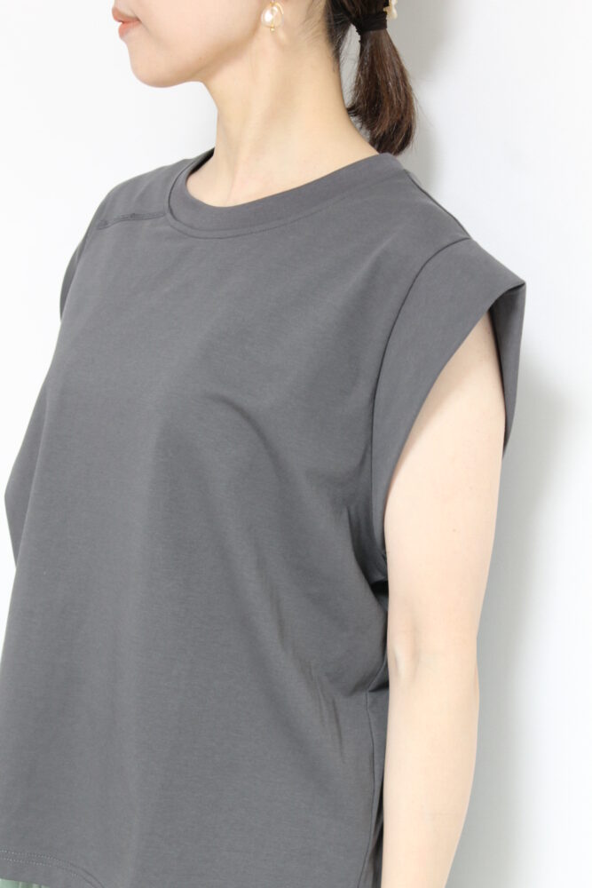 ディニテコリエ(Dignite Collier)らしい抜け感が魅力のフロントタックT。立体的なタックとさりげないアシンメトリーが、シンプルながらも着るだけでこなれた印象に。ゆとりのあるシルエットで体のラインを拾わず、肩まわりも自然にカバー。軽やかな素材感で暑い季節も快適に過ごせ、パンツにもスカートにも合わせやすい一枚です◎