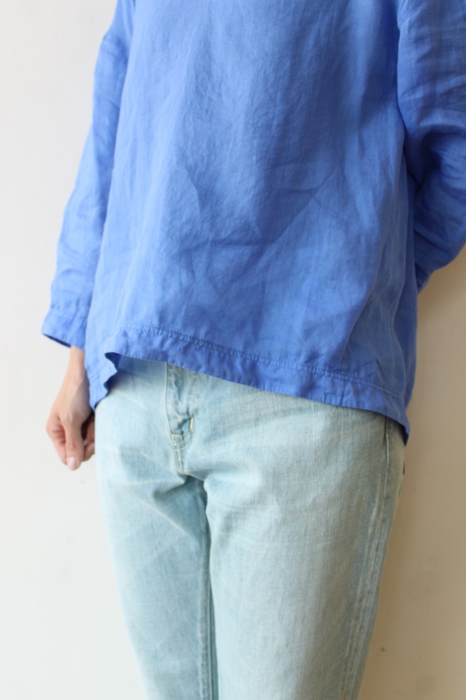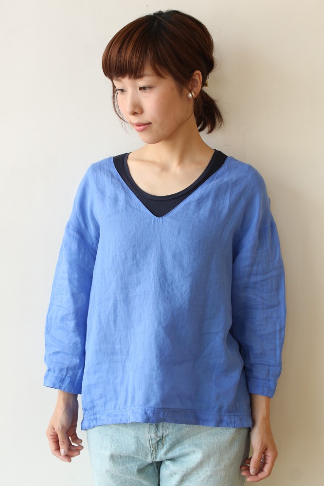 TOMORROWLAND(トゥモローランド)麻Vネックシャツ/ブルー